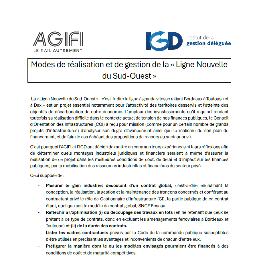 Modes de réalisation et de gestion de la « Ligne Nouvelle du Sud-Ouest »